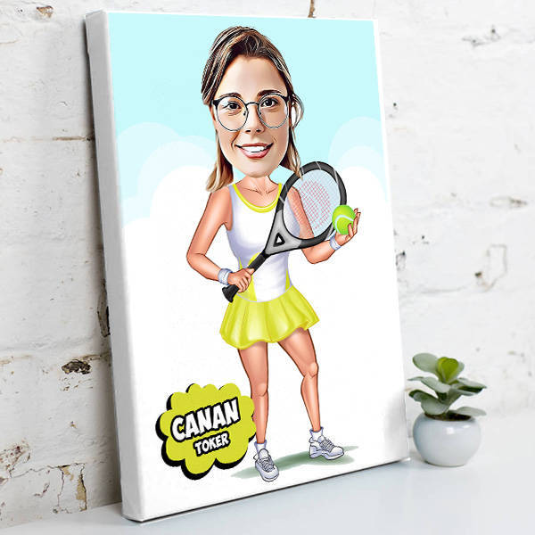 Kanvas tablo üzerindeki karikatür tamamen size özel hazırlanacak. Esprili tenisçi kız tasarımı ve kişiye özel detayları bu esprili kanvas tabloyu bir tık daha ön plana taşıyor. Üstelik tüm hafta boyunca 7/24 şekilde. Ucuz hediyeler anlamlı olmaz mı sanıyorsunuz? İşte bu konuda bize göre çok yanılıyorsunuz. Hediyeye anlam katan öncelikli olarak sizsiniz. Orjinal doğum günü hediyeleri için sürprizinize katacak armağanlar düşünüyorsanız, tenisçi kız tasarımlı kanvas tablolar adeta kurtarıcı oluyor.