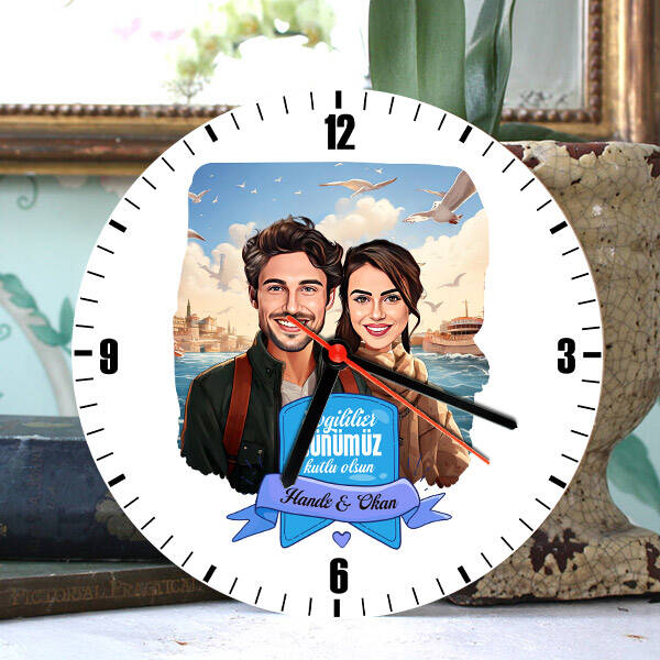 Martı sesleri, deniz kokusu ve aşk... “vapurda aşk karikatürlü duvar saati”, İstanbul’un romantik siluetini aşkınıza özel bir tasarımla birleştiriyor. Göndereceğiniz fotoğraflardan oluşturulan sevimli karikatürünüz, bu saati tamamen size özel bir hale getiriyor. Sevgiliniz her saate baktığında, birlikte geçirdiğiniz güzel anları hatırlayacak ve yüzünde kocaman bir gülümseme oluşacak.