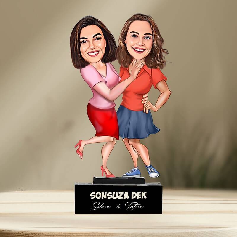 Yakın Arkadaşlar Karikatürlü Biblo, en özel günlerinizde size eşlik edecek bir hediye seçeneği olarak karşınızda duruyor. Sevdiklerinizin hayatına anlam katacak bu biblo, kişiye özel karikatür baskısı ile herkesin kalbinde taht kuracak. Hediye almak istediğiniz yakın kız arkadaşınız için neşe dolu ve moral verici bir seçim olacak.